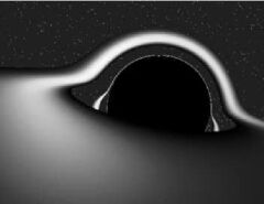 (на рисунке - компьютерная модель ЧД с аккреционным диском, который виден полностью из-за сильного изгиба света вблизи ЧД) |
