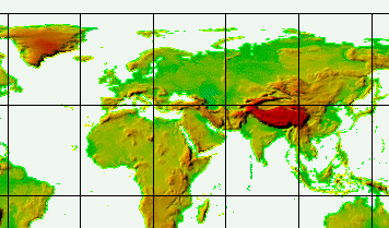 Дальше предлагается скачать данные этого куска, которые дадут карту высот через 30 угловых секунд. Т.е. около 1км. Данные в своем собственном формате. Описание формата дано на сайте. Формат не представляется сложным. Файлы объемные - до 20Мб (compressed), распакованные - до 90Мб. В общем, конечно, несколько напрягает - зато бесплатно. ссылку прислал Alexey |