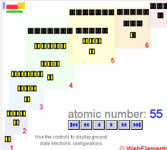 В отличие от школьной (насколько я ее помню) - здесь таблица выполнена более строгим образом - элементы расположены по точно группам, поэтому например барий находится в 13-й группе, а не в 3-й, как можно было бы предположить (если судить по атомному весу). Конечно, все это связано с электронными оболочками и их наполнением. Кстати, весьма показательный мувик (флэшка) на сайте показывает, каким образом заполняются электронные "орбиты" в атомах.