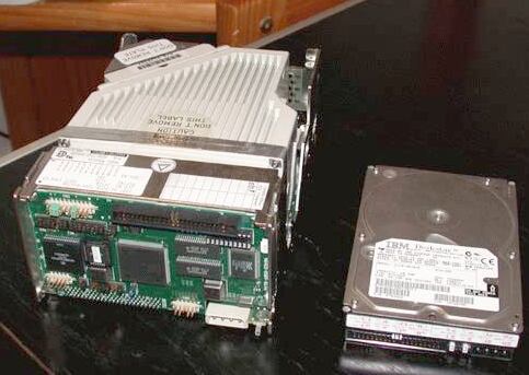 Слева - FUJITSU 2GB, SCSI-1, вес - 3.2кг, размеры - двойной 5,25",