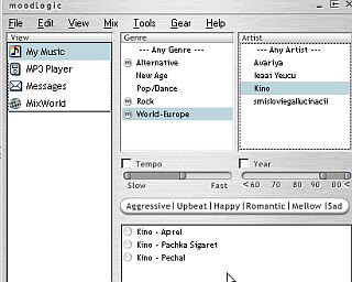 Появилась база отпечатков музыки в онлайне. Нет, они были и раньше, я даже про них упоминал не так давно, но чтобы вот с таким хорошим и доступным сервисом, как MoodLogic - такого я вот раньше не встречал. Одноименная программа весит 4 метра, вмещает в себе кроме самого органайзера еще скин и плагин для Winamp'a.