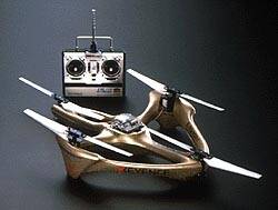 Здесь все проще - стабилизирующего заднего винта нет, зато есть целых 4 винта несущих. Причем, вращающихся в разных направлениях. Система оборудована гироскопами для стабилизации полета и поворотов. Называется Gyrosaucer. Выпускает известная фирма Sigma Automotive. Может летать без проводов и с проводами (с внешним источником питания). На аккумуляторе "вертолет" пролетает 3 минуты (достаточно долго), с внешним питанием - 30 минут. Больше нельзя - моторы перегреваются. Стоит это удовольствие $520 (комплект). |