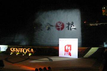 На тему всяческих "экранов в воздухе" прислали любительскую фотку, демонстрирующую фокус с подсветкой фонтана. "В Сингапуре, на острове Сентоза, мы попали на местный конкурс красоты. Там изображение проецировалось на большой фонтан. Струи воды в котором шли плоским веером. Размеры как в большом кинотеатре."