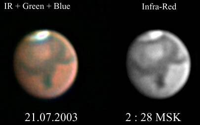 Марс, видимый любительским телескопом. Эти снимки получены с помощью следующих средств: |