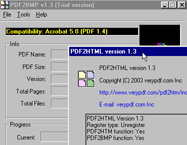 Конвертация PDF во что-либо... не скажу что это мой конек, но пунктик - точно :) Нашел еще одну программу, которую я до сих пор не видел. Называется незатейливо - PDF2HTML, разработчики прикрываются названием Verypdf.com Inc, где у себя на сайте держат очень много полезных штук насчет PDF - всякие шифраторы, экстракторы, преобразователи чего-либо в PDF и вот как раз самое интересное - PDF в Html и BMP. (качать триальную версию на оригинальном сайте - 800kb).