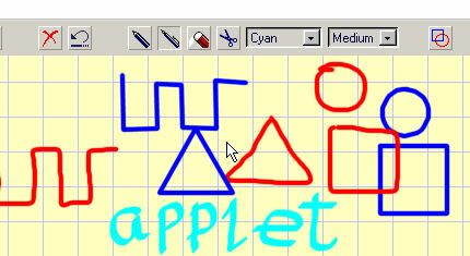 Рисовалка простая и приятная - можно включить режим сглаживания/выпрямления (riteShape) и получать ровные фигурки и линии (как на рисунке). У меня правильно апплет работал в IE и в Mozilla. Посылает на почту рисунок в виде JPG (что очень удобно) или в виде апплета (если у мэйлера есть поддержка Java). Реально же, в TheBat я получил html страничку, где смог воспользоваться только ссылкой - и вот там уже был выбор JPG / Java. Сервис хороший, необходимо лишь пройти регистрацию для отсылки писем (бесплатно). ссылку прислал Vitaly |