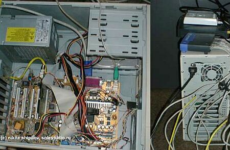 Обратите внимание - насколько было сильно желание впихнуть ATX плату в AT-корпус :)