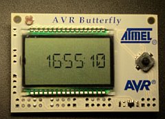 Компания Rainbow Technologies (офисы в Москве, С-Петербурге, Минске, Киеве, Екатеринбурге), которая тесно сотрудничает с Atmel, привезла в Россию достаточно достаточно интересный набор AVR-Butterfly на основе микроконтроллера Atmeg169 - это яркий представитель семейства 8- битных Flash микроконтроллеров, предназначенный для работы в портативном оборудовании с автономным питанием. Потребление в режиме "сна" у него 1 мкА, в режиме сниженной тактовой частоты (32кГц) - 40 мкА. В рабочем режиме при частоте 4 Мгц - 400 мкА при 1,8 В питании. Вот как раз AVR-Batterfly, показанный на фото, при работе от встроенной 3 В батарейки (емкость 600мАч) может работать 7 лет.