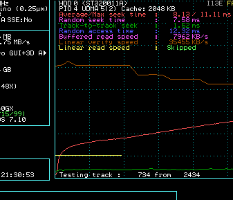 Прислали ссылку на программу SPEEDSYS. Работает под DOS (с ограничениями под Windows). От ASTRA отличается тем, что строит графики скорости памяти CD и винчестера. Очень эффектно тестирует последний.