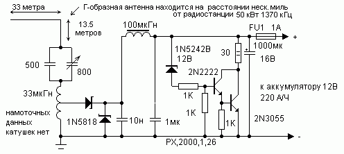 Забавная схемка. Однако, хит сезона - эксплуатация энергии радиоволн (э/магнитных колебаний):