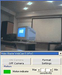 - Supervisioncam - шареварная прога с небольшими нагами в нерегистренной версии. Регистрация - 25 баков. Немцы, кажется, опять делают. Из письма "очевидца" (т.е. счастливого владельца) могу отметить, что прога достаточно устойчивая - работает в течение 10 месяцев непрерывно, записывая картинки по детектору. Поддерживает широкий спектр типов камер (IP в том числе), может поворачивать исходную картинку - эта фича может иногда пригодиться. Картинки аплоадит по всему чему можно. Имеет регулятор точности для детектора движений. Приятная софтинка.