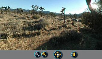 Панорамные фотографии на 360 градусов разворотом различных мест - пустыни, горы, парки, озера и др. места. Загружается апплет (достаточно быстро), в котором можно уже двигать панораму, "смотреть" вверх-вниз, приближать и удалять (ну, это цифровое приближение, так что пикселизация наступает быстро, хотя при максимальном удалении картинка наоборот уменьшена, чтобы помещаться в окно, а при приближении сперва создается впечатление, что все четко, лишь потом, когда уже идет цифровое увеличение, апплет начинает размывать пиксели, чтобы не было уж совсем явного зерна). Кстати, "загляните" под ноги :)