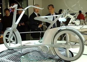 Про машины на motor-show в Токио: SUZUKI "Mobile Terrace" TOYOTA Personal Mobility car Эта машина может наклонять корпус в зависимости от скорости и передние колеса могут поворачиваться под разными углами друг к другу - таким образом машина вращается на месте. Кстати, обратите внимание на колеса - ступиц нет. Вообще, хрупковато выглядит. Ссылки на сайт, содержащий остальные фотки про motorshow - под картинкой. ссылку прислал Evgueni А велик неплохо выглядит, хоть это и просто concept: