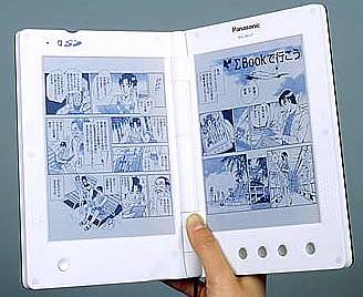 Matsushita (торговая марка Panasonic) хочет ввести в обращение вариант электронной книги SigmaBook, носителем для которых будет флэшка SecureDigital. Хотя дизайн книжки новизной и не блещет, но двухсторонний разворот - это правильно. Разрешение экрана 1024 x 768 (все вместе), 16 градаций серого. Чего вполне хватает для любого ч/б "книжного" изображения. Вес книжки - полкило.