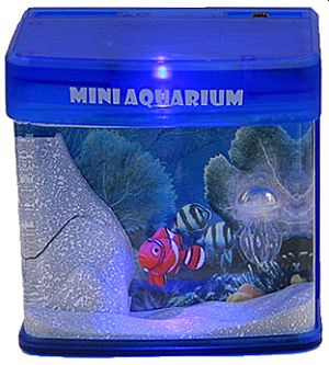 Баксов 15 стоит, но ничего особого и не делает - рыбки пластиковые плавают, да и подсветка есть. Видел тут. |