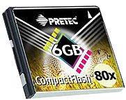 Произведения компании PRETEC. Стоят 5000 и 12550 евро соответственно. В долларах даже подумать страшно :) А вы как думали! Это пока новинка. Купить могут только богатые профессиональные пользователи, которым ну вот супер как жутко нужны такие флэшки. Кстати, ценовая линия какая-то странная - 2 шестигигобайтовые флэшки дешевле чем одна 12Гб. Мотив вроде понять можно, но все равно непривычно. Между прочим, у этой претековской 6Гб флэшки заявленная скорость 12Мб/сек - пока это самая быстрая флэш-карточка в мире.
