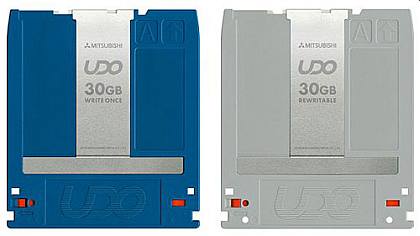 Так что даже цена $150 за дискетку 30Гб не должна пугать - надежность должна все окупить. Кстати для этих емких дискет используются приводы на основе Blue-ray лазера. |