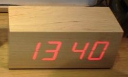 Не в курсе, кто производит такие часики, но это не проекция и в выключенном состоянии действительно, кажется, что это просто брусок дерева. Просто светодиоды находятся за достаточно тонким слоем дерева.
