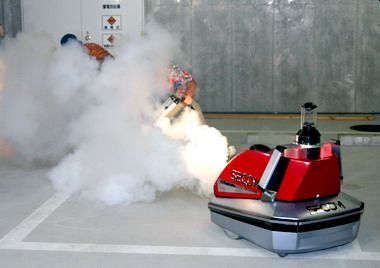 Применяется в основном в зданиях (так и хочется написать: основная среда обитания - здания и прилегающие территории :), где выполняет утилитарные функции обходчика. На вооружении этого вохровца есть дымная пушка, сильный свет, динамики и способ вызова полиции. Может работать автономно (по заданной программе) или управляться дистанционно. Выполняет функции распознавания свой-чужой. Стоит около 2500 евро. Вес 120 кг, крейсерская скорость 10км/час. Что еще... а, батареек хватает на 24 километра. |