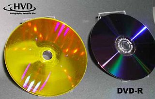Optware продемонстрировала первый в мире Holographic Versatile Disc, где информация записывается на слое поверх форматирующей дорожки обычного DVD.