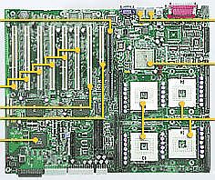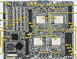 Две достаточно серьезные материнские платы от Tyan (для интеловых процов и для атлонов): Явно не бюджетная серия :) Учитывая цену на 4 не самых хилых процессора, такой монстр в сборе обойдется недешево. Слюноотделительные спецификации можно почитать на оригинальном сайте (ссылки под картинками). |