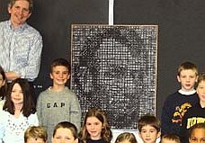 Домино-арт. Я так полагаю, что такие вещи создаются с помощью компа. Т.е. сначала картинку преобразует комп, а потом энтузиасты выкладывают доминошками картину. Симпатично конечно.