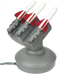 Ракеты запускаются сжатым воздухом. По-моему, насколько я понял, через USB можно управлять поворотом станины и наклоном направляющих. Ну и запускать ракеты конечно. Супер игрушечка. Забота о тех, кто за компом сидит днями... чтобы не забывали развлекаться. :) |