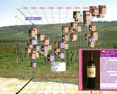 Вариант 3D - браузера от NTT. Называется незамысловато - SpaceBrowser. Практически, весь сайт виден в небольших thumbnail'ах, которые разбросаны в 3D-порядке. Ну, и (внизу справа) - само изображение выбранной страницы. Несколько специфичный сайт, кстати должен быть, чобы его так просматривать. Какой-нибудь каталог или магазин.