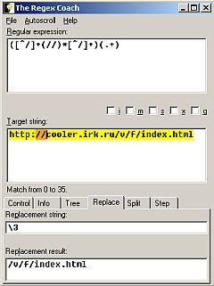 Можно посмотреть, какая именно подстрока выделится, если перейти в закладку replacement или даже поглядеть "дерево" просмотра regexp. На данный момент (октябрь) доступна версия 0.7.1 Есть для Windows и для Linux-платформ. |