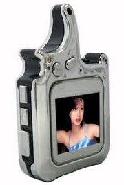На фото - mp3-плеер. Дизайн, согласитесь, очень интересный - динамик может вещать наружу любимую музыку, будучи развернут в "боевое состояние"...