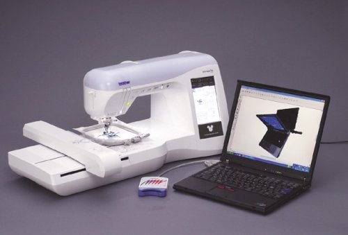 "Питается" флэш-карточками, на которых записана вышивка (коды конечно). Сама программа разработки и подготовки работает на обычном компе (ноутбуке, например). Стоит 2800 евро. В общем, для компании, производящей принтеры,