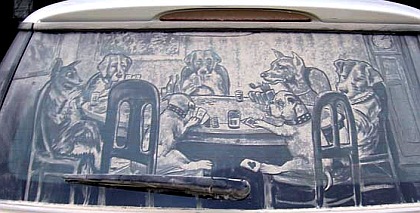 Художник Scott Wade работает не красками, а просто кисточками по пыли (грязи), предпочитая задние стекла автомобилей. Круто конечно получается, жаль что до первого дождя или первой мойки. Название его сайта вполне говорящее - DitryCar Art |