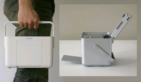 Выпускает EPSON - модели Colorio E-300, E-500, E-700. Есть ИК интерфейс (еще должен быть bluetooth), универсальный карт-ридер, небольшой LCD и ручка для переноски. |