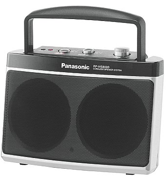 Panasonic. Беспроводные колонки RP-WS800. Передча сигнала - ИК. Питание, разумеется, отдельно. Такой прибор - вещь достаточно специфическая и нужны бывает именно в какой-то ситуации. И бывает незаменима (к колонкам в паре идет и ИК-передатчик, который принимает аналоговый линейный сигнал).