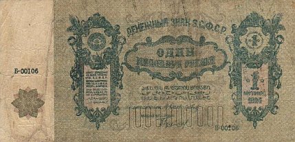 Ну и, самая крупная по номиналу купюра всех времен России - 1млрд. рублей. 1921 год.