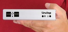 Linutop - маленький компьютер с процессором AMD Geode внутри и набором всей необходимой периферии. Судя по весу и габаритам - питание отдельное.