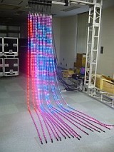 Сделан из "ниточек", которые содержат группы светодиодов по 3 штуки на пиксел (цвета RGB) и по 96 таких групп. Глубина цвета - 12 бит. Потребляет всего 500Вт. Представила разработку японская компания Hibino Corp. Цена называется правда, какая-то нереальная - 300тыс. долларов. |