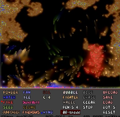 Интересная игрушка, основанная на физике - это Java-апплет, который эмулирует гравитацию, ветер, рост семян, взрывы, горение пороха, замерзание воды и др. Например, можно в ледяное замкнутое пространство насыпать порох, сверху - маслица, потом C-4 и поджечь. Ну в общем, развлекаловка на office-killer вполне тянет.