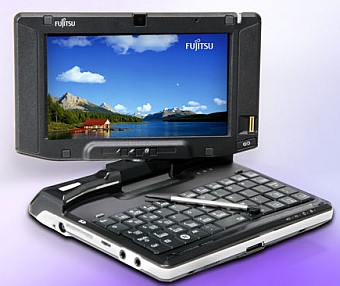 UMPC от Fujitsu - LifeBook U810. Вес 600г, процессор Intel 800МГц A110, 1Гб память, 40Гб жесткий диск, 5 часов работы от аккумуляторов, экран 5,6 дюйма (1024х600), слот для SD и CF карточек, Bluetooth, в/камера, поддержка HSDPA для мобильной связи (и данных разумеется). И еще куча всяких фич. Запускает MS Vista Home Premium и соответствующие приложения. Габариты: 16см х 13см х 3см.