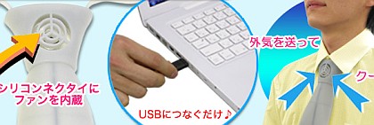 А вот USB-галстук - точно USB-бытовуха. Просто вентилятор, который гонит воздух под рубашку. Это все японские штучки, которые кроме японцев никто не понимает зачем они нужны. Видел здесь. По-моему это такой способ продавать вентиляторы :) Кстати, Thanko делает.