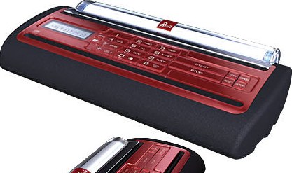 Мобильный факс GRETA (Шведская компания Possio). Мобильных устройств много, но вот именно факс-машину я вижу впервые. На борту разумеется, есть GSM. Есть USB интерфейс. Заодно и принтер, кстати. И телефон. И сканер-копир. Габариты: 29 х 15 х 5см. Весит около 1кг, рулон бумаги - 15м.