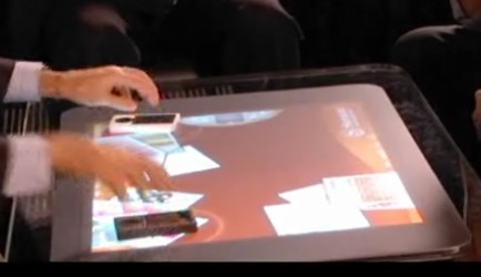 Microsoft table - это детище, насколько я понял, выросло из интерфейса, предложенного Джеферсоном Ханом. Суть проста: есть сенсорный экран (который даже мультисенсорный), есть комп и Bluetooth. Ну и, пожалуй все. Может, есть в/камеры.