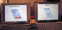 На выставке CES2007 показывали загрузку и выключение одинаковых нотеров, стоящих рядом: один с обычным HDD, другой - с SSD. Видеоролик смотреть здесь.