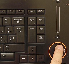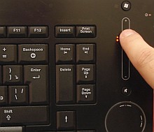 Особенность: клавиатура имеет такую подсветку, что когда все это работает, то возникает ощущение, что управляешь как минимум каким-то мега-девайсом. В полутьме смотрится вообще супер! :) Во-первых, подсвечивается регулятор громкости - это сенсорный слайдер. Во-вторых - сенсорная площадка, которая может работать как мышь или как jog (в оригинале - TouchDisc). Из сенсоров - это все, а остальное просто подсвечивается