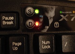 Кроме этого, есть два трехрежимных переключателя, которые устанавливают функции этих "резиновых" кнопок: скорость автоповтора, скорость отклика и скорость задержки и присваивание функций курсорных клавиш этим AWSD. Кроме этого, меняются местами кнопки CapsLock и Ctrl.
