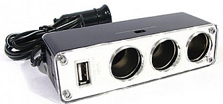 Автомобильный "тройник". Заодно с USB разъемом (сугубо для зарядки разных устройств). Зачем сразу три гнезда для автоприкуривателей - не очень понятно. Видел здесь. Модель Seiko EM-49. Практически малополезная безделушка.