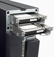 Вообще, у Logitec этот корпус позиционируется как корпус с особыми выдвижными винтами, но мне больше всего понравилась ширина: чуть более 3,5-дюймов. 5,25-дюймовые приводы можно вертикально поставить (а можно вообще использовать только внешние). Таким образом, корпус станет существенно тоньше. Разумная идея.
