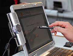 Не пленка. Ультразвук и ИК-светодиод в специальном стилусе. В корпусе прибора - два микрофона и фотодиод. |
