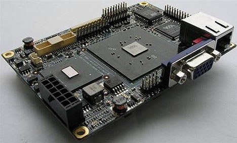 Новый стандарт материнских плат от VIA - pico-ITX. Примерно в два раза меньше предшественника - nano-ITX. Разъемы SVGA и Ethernet, как видите, отражают полную готовность платы к стандартной работе :) Габариты - примерно 10х7,2см.