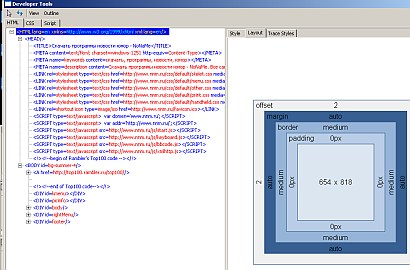 Одной из новых фич указывается возможность восстановить окна при закрытии приложения (неважно по какой причине). Ух! Оперу догоняем :) Так, первое, что бросается в глаза - MSIE 8 достаточно шустрый. Не могу не признать. Однако, кэш (как и раньше) - только дисковый и также все равно идет проверка документов на сервере - ну что он там постоянно качает?. В Опере кэш сделан гибче и самая основная фишка, за которую опера ценится - это когда я нажимаю кнопочку "back" ("forward") я _моментально_ попадаю на предыдущую/следующую страницу. Причем без проверки ее на сервере (конечно, все это можно регулировать). Почему здесь так не сделали? Что понравилось: Developer tools - круто. HTML как DOM, CSS и JS вместе с дебаггером (!). Правда, видны недоделки с выбором элементов в виузальном представлении и показывании их в DOM, но это все таки бета-версия.